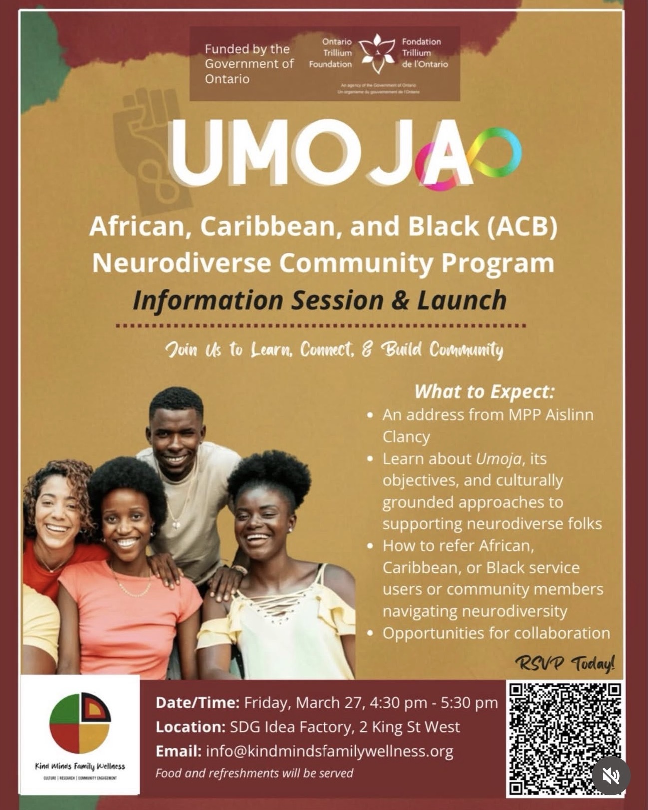 Join Kind Minds Family Wellness for a discussion of the Ontario Trillium Funded UMOJA program for African, Caribbean, and Black Communities