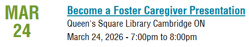We are in urgent need of foster caregivers who can open their homes to children from newborn to 18 years of age. If you’re interested in becoming a foster caregiver, please contact a Recruitment Worker at 519-576-0540 or email us at: fostering.kids@facswaterloo.org